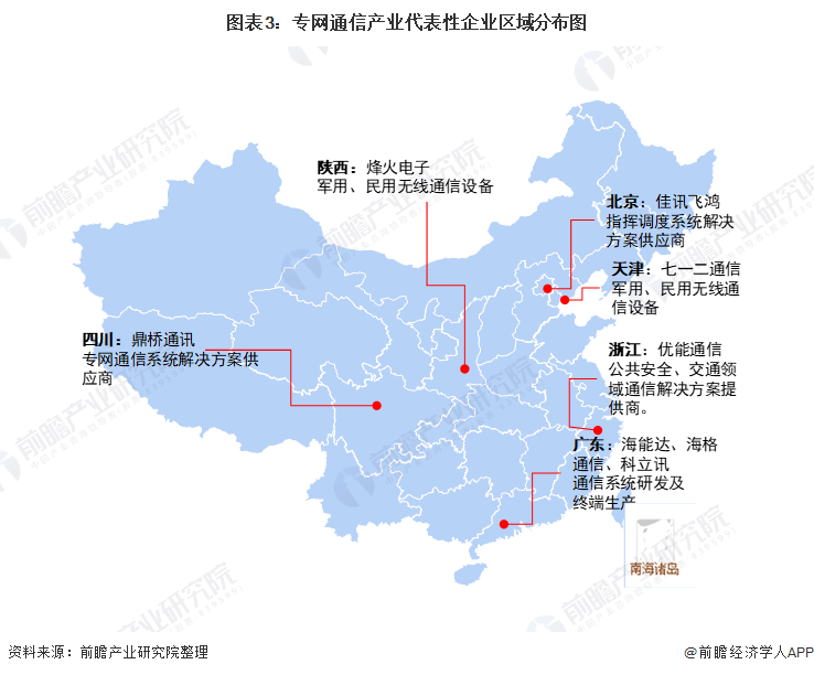 从代表性企业分布情况来看,海能达、海格通信、烽火电子知名度较高。这些专网通信产业代表性企业主要分布在珠三角一带,其余企业在华中、华东地区也有分布,带动了当地产业链的发展。