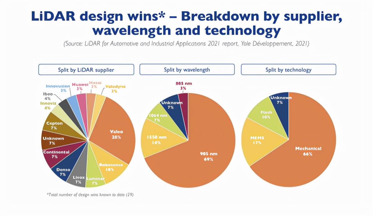 从Yole发布的最新数据来看,目前市场份额最高的Valeo也没有超过30%,而其他行业玩家仅有速腾聚创以10%居第二,其余玩家均为个位数的市占率,这表明市场格局仍然比较分散,不少玩家仍有机会。
