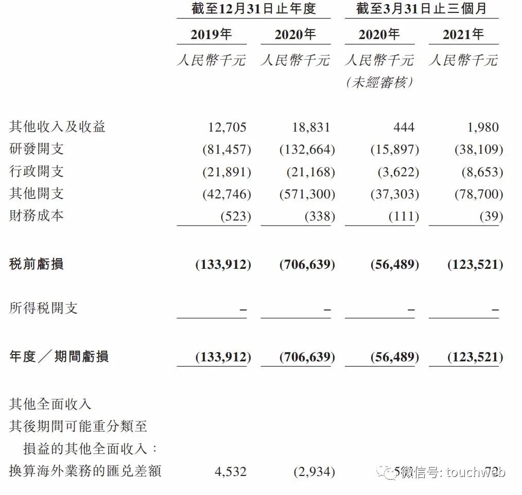 和誉生物2020年之所以亏损扩大,主要是计入5.71亿元其他开支,此外,研发开支为1.33亿元。