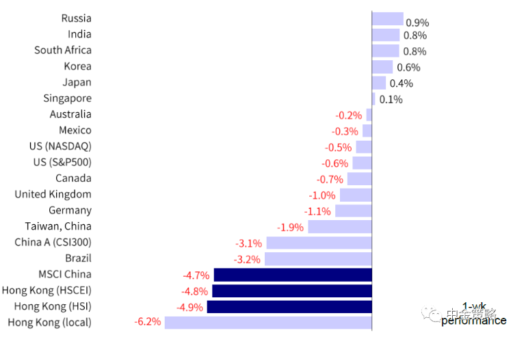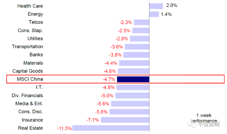受房地产和保险板块拖累,MSCI中国指数上周大幅下跌4.7%