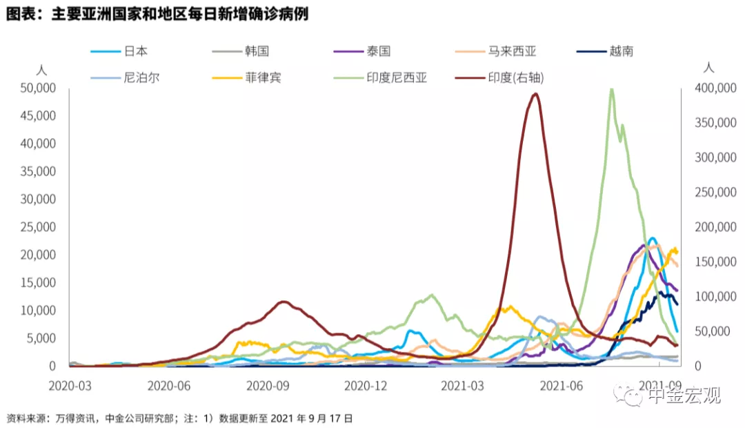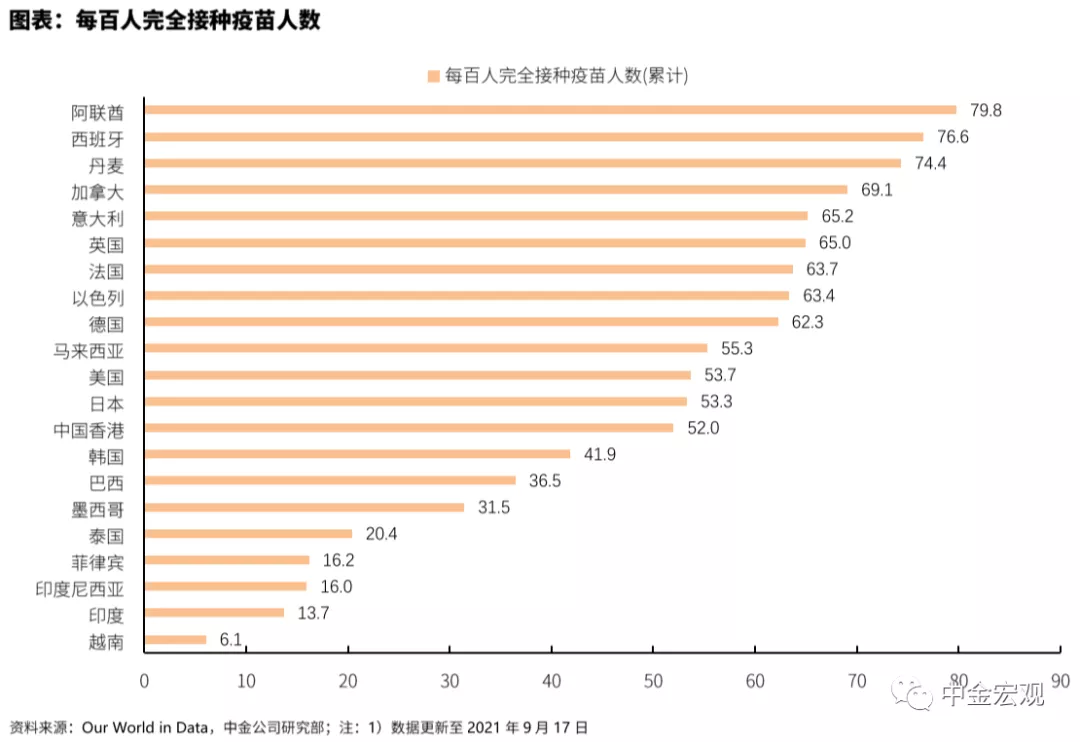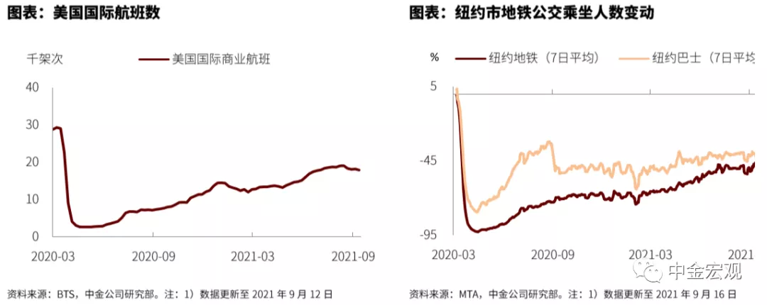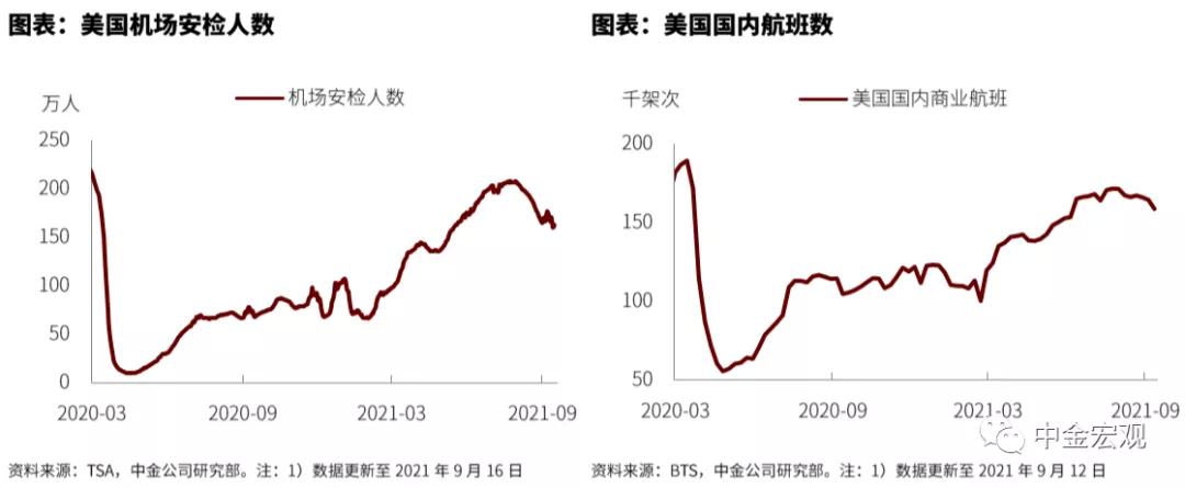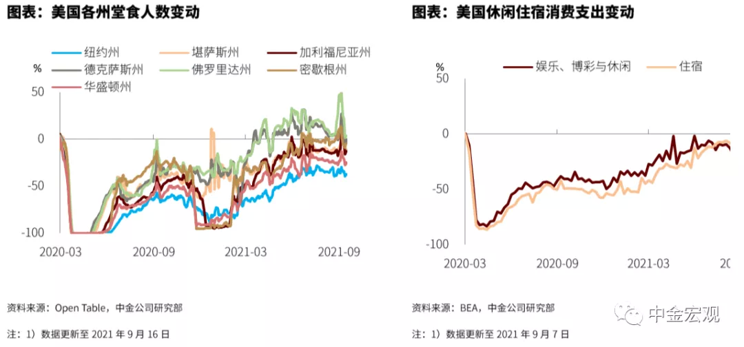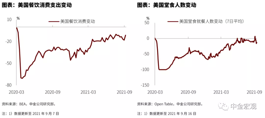 3) 预计美联储将下调GDP增长预测,同时上调PCE通胀预测。由于7月以来Delta疫情在美国迅速蔓延,对经济活动造成了负面影响,美联储官员们或将在本次会议上下调美国GDP增长预测。我们预计2021年第四季度GDP同比增速预测中值可能会从此前的7%下降至6.5%,2022年GDP增速预测或不变。与此同时,由于过去几个月供给瓶颈未得到显著改善,加上劳动力成本加速上升,或将使部分官员认为通胀压力将持续存在,从而上调PCE通胀预测。我们预计2021年PCE通胀预测中值或由此前的3.4%上升至4%,2022年PCE通胀预测中值或由2.1%上升2.3%。