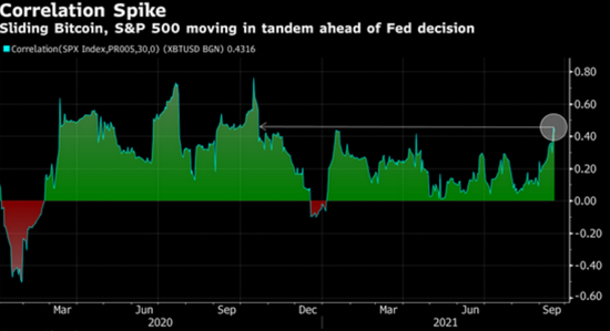 加密货币交易所Luno驻新加坡的亚太区主管Vijay Ayyar表示,当前重大新闻事件的背景解释了为什么比特币和股票之间的联系更加紧密。他说,鉴于美联储即将开会讨论减码货币刺激,市场内存在着一些不确定性。