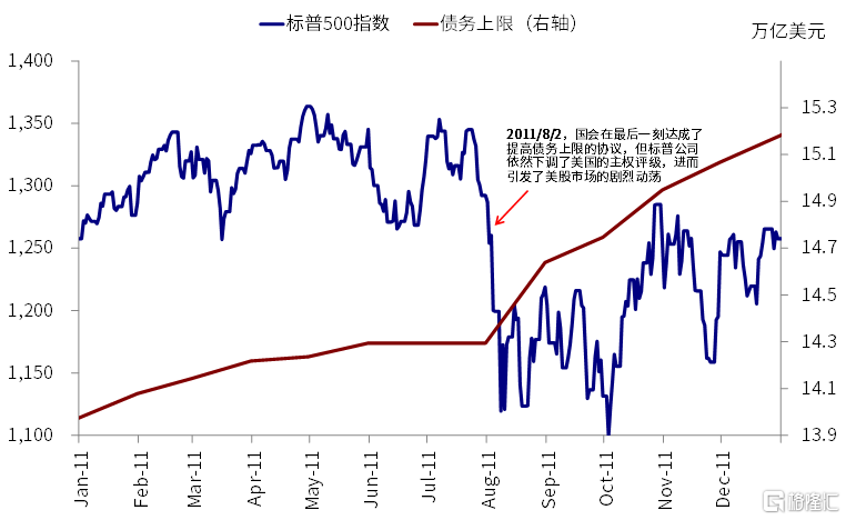 例如,10月1日新一财年到来后如果无法达成新的预算框架或者拨款法案,可能导致部分政府非职能机构关门。对比已经见怪不怪且影响有限的政府关门,债务上限的意义更大,10月中旬待财政部非常规措施耗尽如果不能冻结或者提高债务上限的话,那么则会面临更为严重且影响更大的违约风险问题(《债务上限与政府关门,风险多大?影响如何?》)。2011年8月虽然到最后有惊无险的提高债务上限,但还是避免不了标普调降美国主权评级,进而导致市场的剧烈动荡。最新进展是,国会打算就债务上限和支出法案一起进行表决,将其冻结延后至12月。