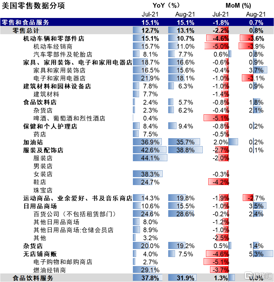 近期美国疫情已经出现筑顶迹象,而8月疫情升级最严重阶段美国消费超预期改善本身也说明市场的担忧可能有些过度。在美国居民超额储蓄依然很高、杠杆依然偏低的背景下,居民的消费能力依然存在,且可能随着疫情的缓解而快速修复。这一背景下,三季度疫情造成的低基数可能使得四季度环比再度明显走强。