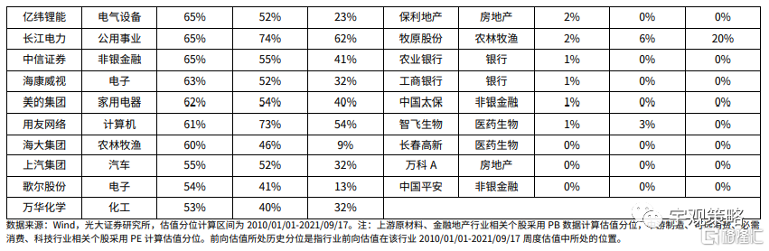 2 行业估值分析:大部分消费及科技行业估值已回落至历史较低水平