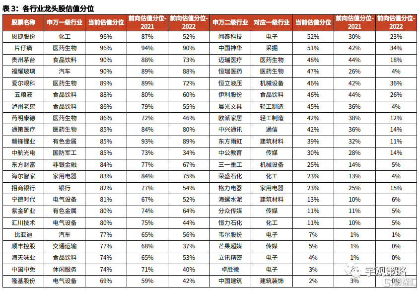3 龙头股估值分析:部分龙头股估值已回落至历史低位,值得持续关注
