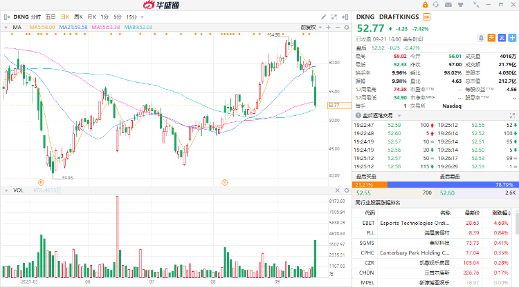 消息传出后,DraftingKings周二收盘大跌超7%报52.77美元。