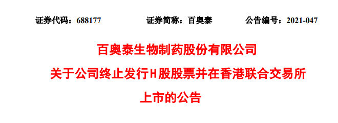 百奥泰近日公告宣布终止发行H股股票,结束了第二次港股上市之旅。其在公告中称,鉴于公司目前经营情况,经审慎研究,公司第一届董事会第二十八次会议审议通过了《关于公司终止发行H股股票并在香港联合交易所上市的议案》,同意公司终止发行H股股票并在香港联交所上市的申请。