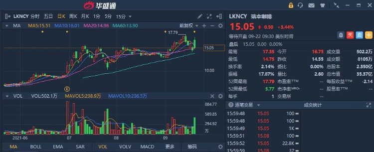 9月21日,瑞幸在美股OTC市场一度涨超18%,尽管收盘最终回落到3.44%涨幅,但股价依然有15.05美元,而去年退市时股价跌到了1.38美元,这意味着瑞幸自去年6月29日退市至今,股价大涨10倍!
