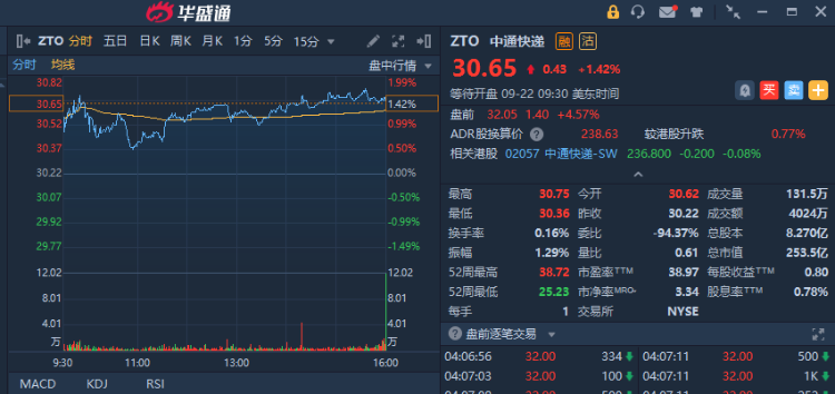 华盛资讯9月22日消息,热门中概股盘前多数上扬,中通快递(ZTO)涨4.57%,腾讯音乐(TME)涨2.6%,哔哩哔哩(BILI)、滴滴(DIDI)涨1.71%,京东(JD)涨1.16%,蔚来汽车(NIO)涨1.06%。