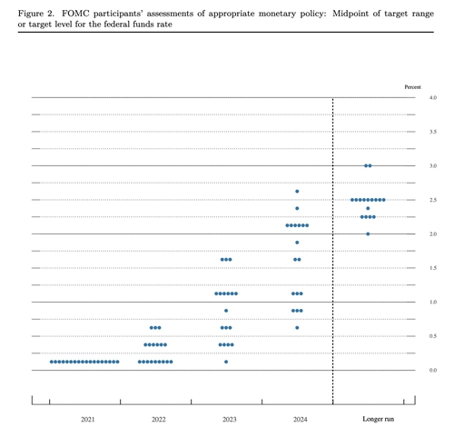 FX168财经报社(北美)讯 美东时间周三(9月22日),美联储表示,到2024年底可能会加息6至7次,这表明美联储乐观地认为,自新冠疫情中的复苏将取得良好进展,足以让美联储在几年内收紧宽松货币政策。