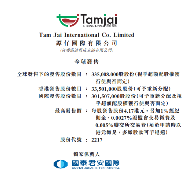 华盛资讯9月23日消息,谭仔国际(02217)于9月23日-9月28日招股,公司拟发行3.35亿股,入场费 4,212港元,预期10月7日上市。前往新股中心,申购新股>>