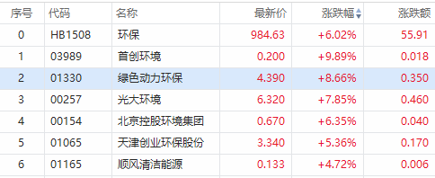 周四,港A环保板块冲高,截至发稿,港股首创环境大涨9.89%,绿色动力环保涨8.66%,光大环境涨7.85%,A股三峰环境、瀚蓝环境冲击涨停。