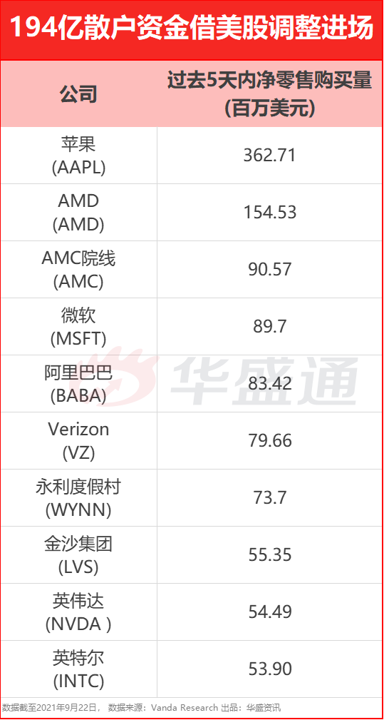 尽管大量买入科技股,但散户投资者并没有完全放弃所谓的Meme股和中概股。在过去五个交易日里,他们斥资逾9000万美元买进AMC院线 $AMC ,又买进价值超8300万美元的阿里巴巴 $BABA 股票。