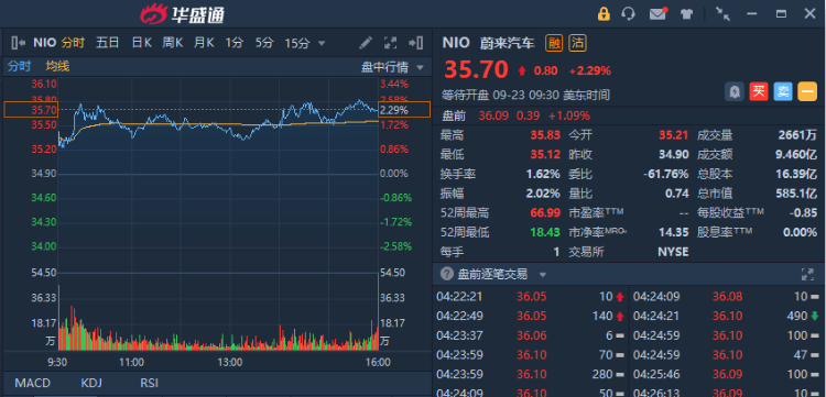 华盛资讯9月23日消息,中概新能源车股盘前上扬,蔚来汽车(NIO)涨1.09%,此前蔚来发布75度三元铁锂混装电池包;理想汽车(LI)涨0.84%;小鹏汽车(XPEV)涨0.76%,小鹏P7累计交付达到5万台。