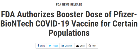 美国FDA22日宣布,将扩大辉瑞(PFE)/BioNTech(BNTX) COVID-19疫苗(Comirnaty)加强针紧急使用授权(EUA)人群范围。