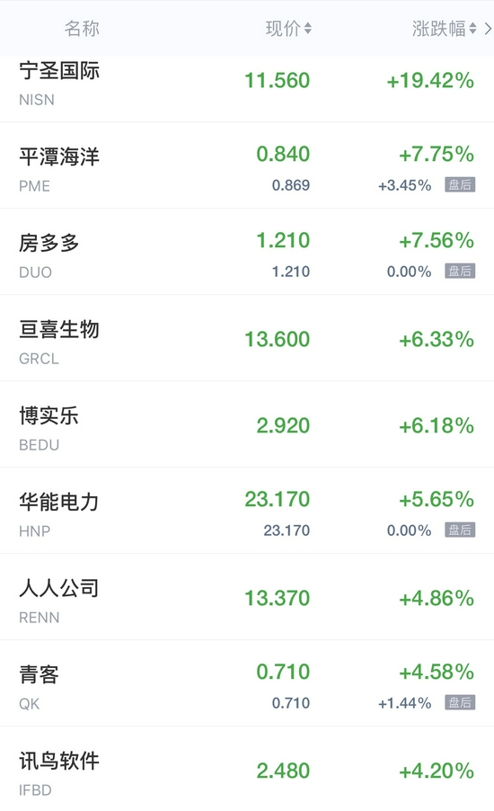 (截图来自新浪财经APP 行情-美股-中概股热门板块)下载新浪财经APP