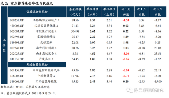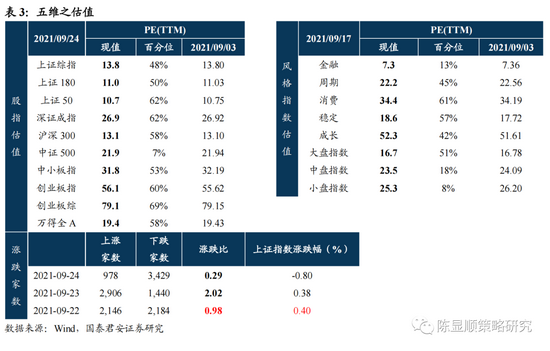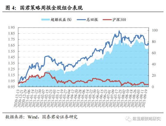 大势研判:持股以待,十月行情。7月下旬以来,A股市场既有指数中枢的显著抬升,又有连续46个交易日的万亿成交表现。行情至此,新的动力与范式正在酝酿:1)国内消费、地产等数据持续走弱,经济下行预期的方向已成共识,尤其是中低收入群体资产负债表的承压,将推动宽货币向宽信用的传导与扩散。2)能耗双控背景下,原材料涨价对中下游企业盈利的挤压,短期虽难缓解,但考虑到稳增长与稳就业的边界,限产政策与供需矛盾最为突出的时点即将过去。3)海外方面,尽管美联储Taper步伐逐步逼近,但在充分预期的背景下,美股难以受到显著冲击,考虑到国内外货币政策存在相位差,国内权益市场更具内生性。叠加中美关系缓和、G20峰会将至,以及国内风险事件的有序处理,分母端逐步发力与预期修正,A股有望迎来金秋十月行情。