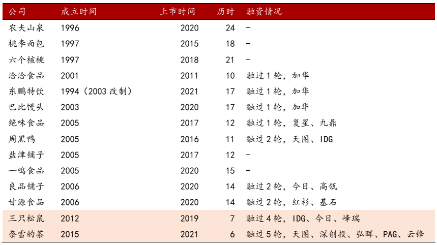 部分食品饮料(酒除外)的上市公司情况,消费是一个不差钱的赛道,也是一个慢周期赛道,资本介入确实加速了上市速度,但上岸的依然寥寥无几