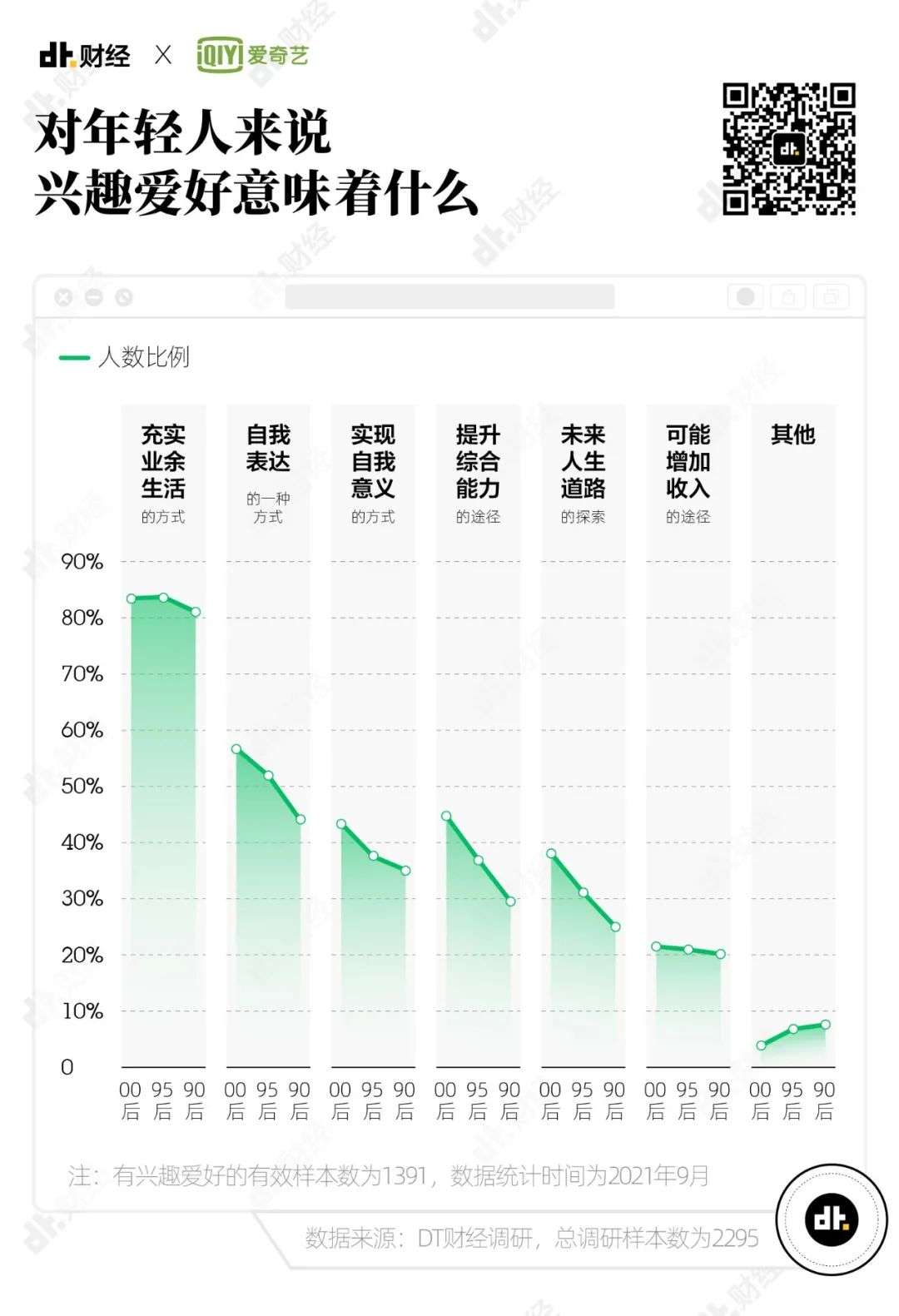 前文提到,越年轻,就有越高比例的兴趣投入者认为,兴趣爱好意味着自我表达;在00后兴趣投入者中,这个比例是56.8%。