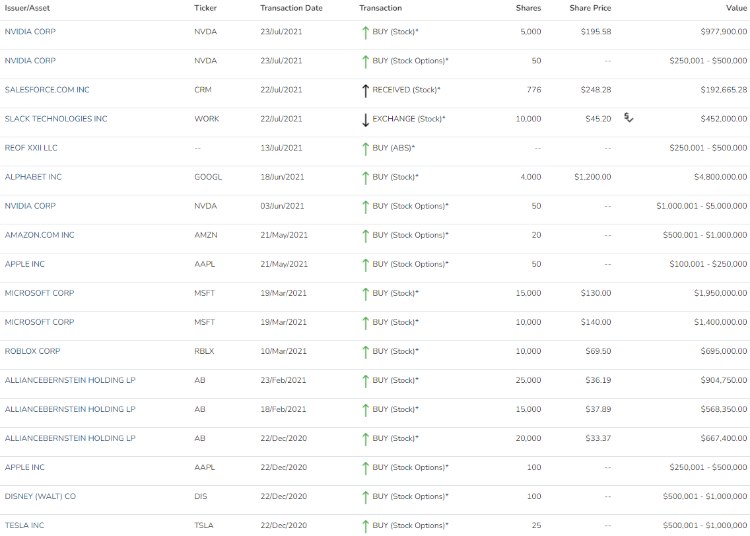 佩洛西并不是唯一一位披露这些股票信息的议员。今年到目前为止,参众两院议员已经提交了4000多份金融交易披露文件,其中涉及至少价值3.15亿美元的股票和债券买卖。