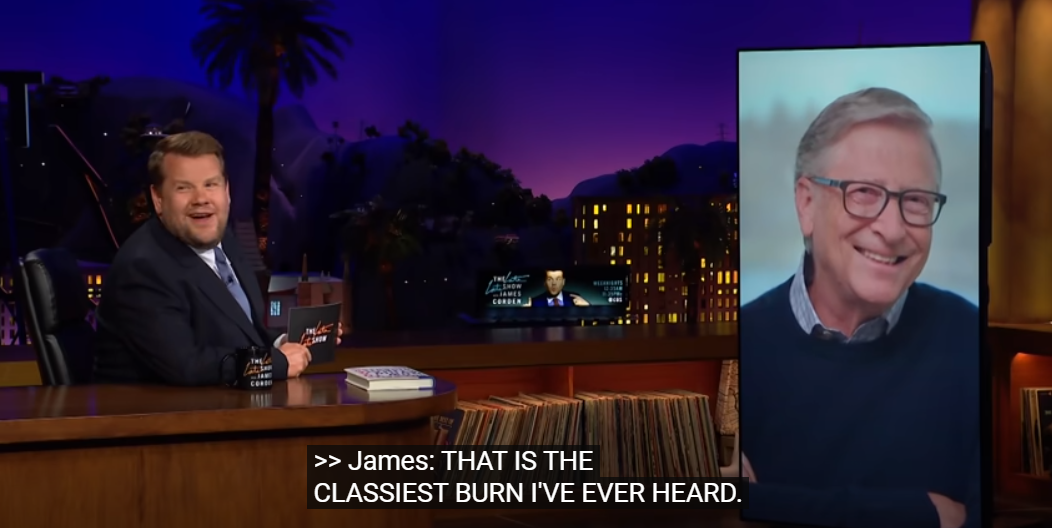 柯登打趣地回应道:“这是我听过最经典的损人的话”,并感谢盖茨“是唯一一个没有试图乘坐宇宙飞船逃离地球的亿万富翁。”