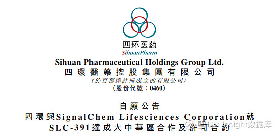 9月24日,四环医药附属公司轩竹生物科技有限公司(「轩竹生物」)宣布与Lifesciences公司(「SignalChem」)就一款高活性和高选择性的AXL靶向抑制剂SLC-391在大中华区的开发和商业化权益签订了合作和许可协议。