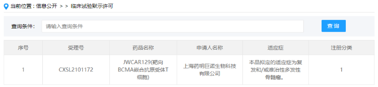9月26日,据CDE官网,药明巨诺JWCAR129临床获批,适应症为治疗复发/难治性多发性骨髓瘤,这是药明巨诺的第2款CAR-T疗法。