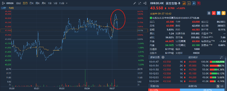 今日早盘,康方生物一度涨超5%,市值超368亿港元。