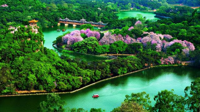 (上图)大龙潭风景区位于柳州市区南部,融喀斯特自然山水景观和少数民族风情文化于一体,是国家生态旅游示范区。