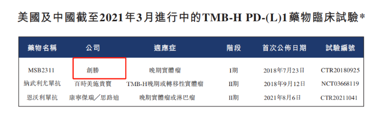 不过创胜集团产品目前亦处于二期临床,预计临床试验将于 2024 年完成,因此上市略需时间,同时中国用于治疗 TMB-H 肿瘤的 PD-L1 抗体的市场规模与前四大适应症相比更小,因此公司估值应处于同业平均水平低位。