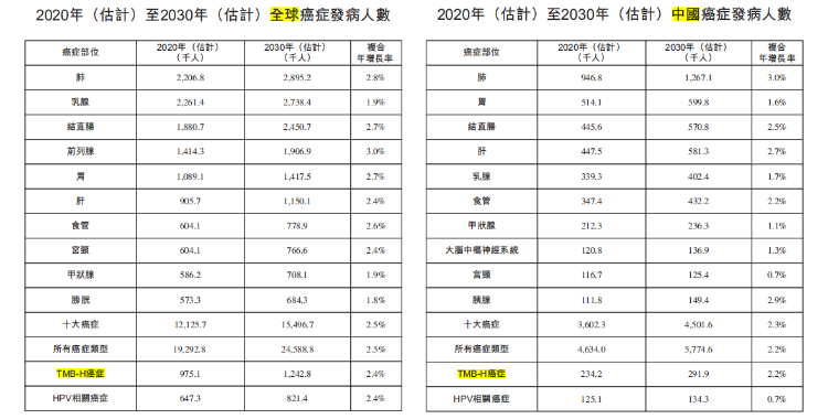 2020年全球TMB-H癌症的发病人数估计为975.1千人,预期将于2030年进一步增至1,242.8千人。2020年中国的发病人数估计为234.2千人,预期将于2030年增至291.9千人。美国及中国用于治疗TMB-H肿瘤的PD-(L)1抑制剂的市场规模预计于2035年将分别达到2,081百万美元及500百万美元。可见药物开发成功后的销量前景可观。