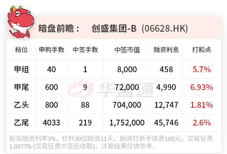 对于融资打新的人来说,创胜集团-B开盘后涨多少个点才能赚回利息?小编经过计算得出以下结果: