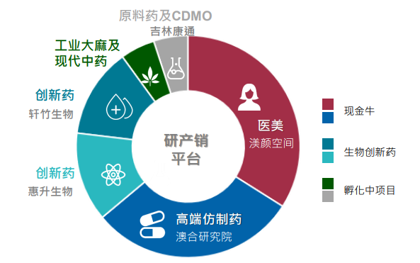 据公司财报显示,公司除了拥有医美业务之外,仿制药、创新药、原料药与CDMO和工业大麻等业务均有涉及。其中医美和高端仿制药作为公司的现金牛产品,占据了超过50%的收入来源。