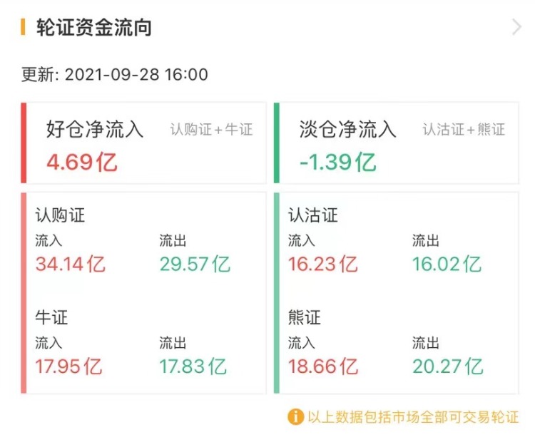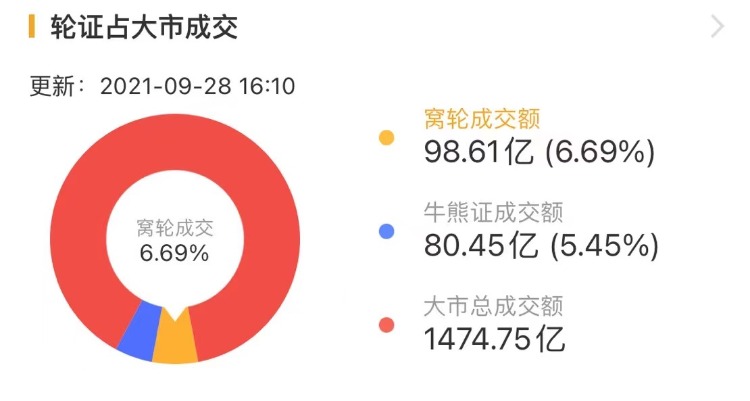 其中,窝轮总成交额98.61亿港元,牛熊证总成交额80.45亿港元。