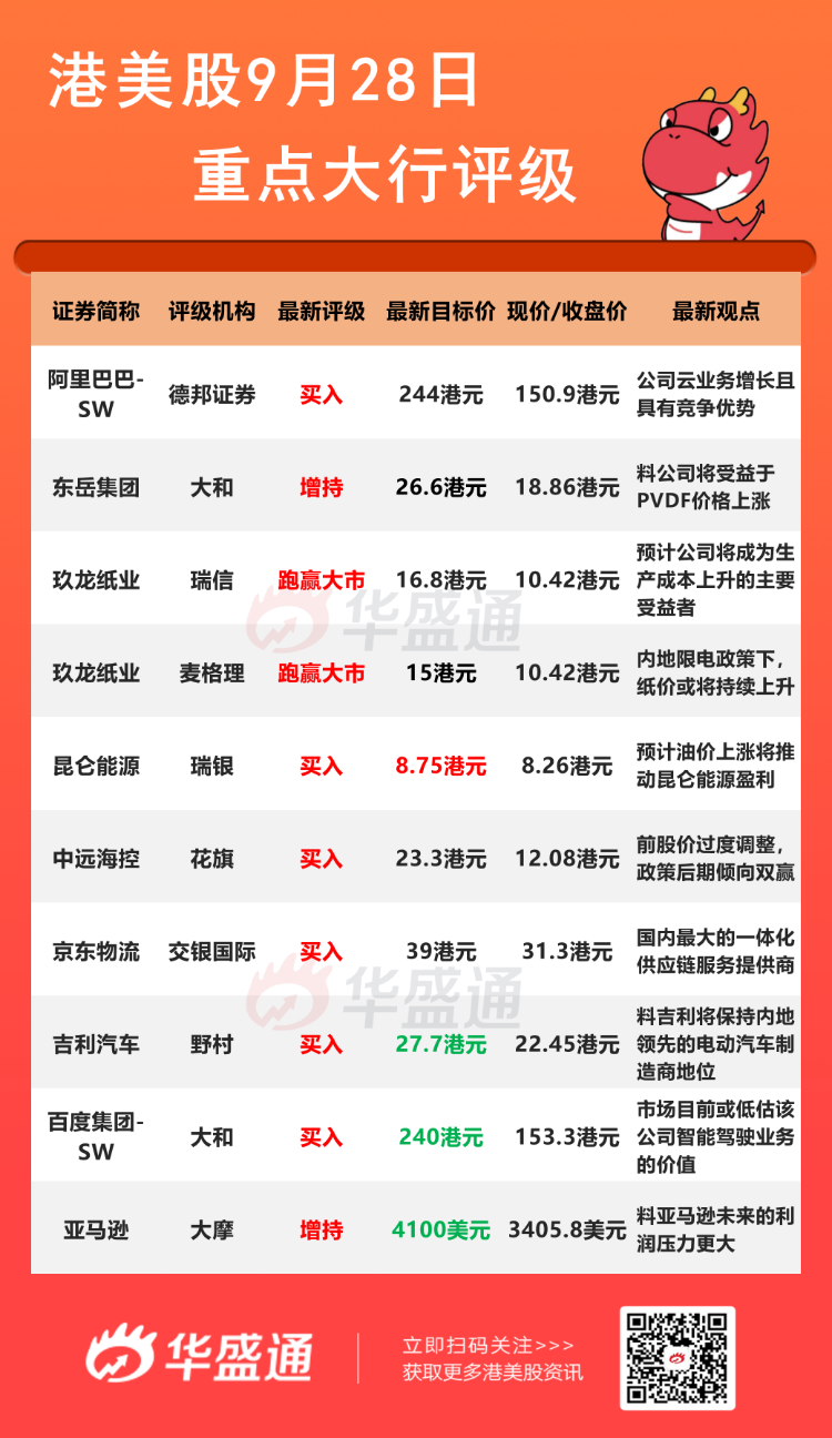 德邦证券发研报指,该行首予阿里巴巴-SW买入评级,计算出该股2022年每股合理价值为244港元/股。