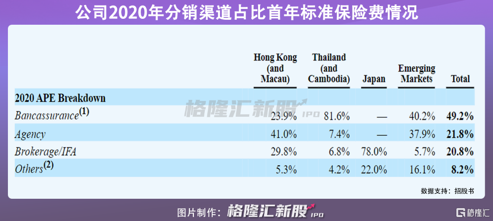 细分来看,富卫设有多元分销渠道,包括银行伙伴、专属代理人团队和经纪中介,其中,银行渠道为主要收入来源,于2020年首年标准保险费中占比49.2%。