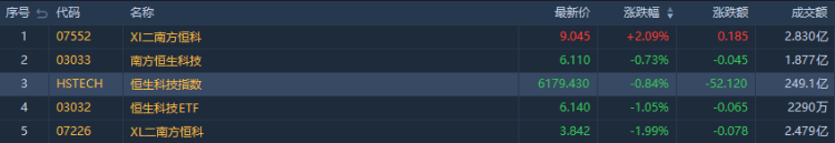 南方两倍做多恒科 $07226.HK 跌1.99%,成交额为2.479亿港元;