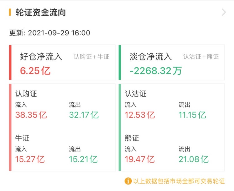 其中,窝轮总成交额97.80亿港元,牛熊证总成交额76.56亿港元。