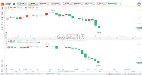 COMEX最活跃黄金期货合约北京时间9月29日22:19一分钟内买卖盘面瞬间成交2660手,交易合约总价值4.60亿美元。