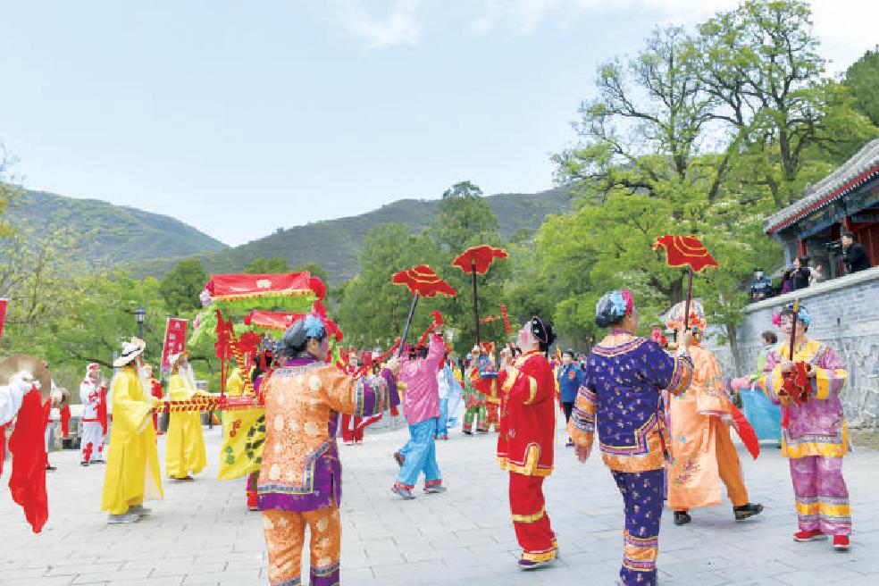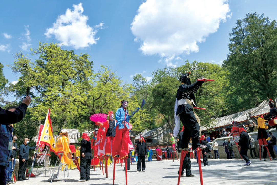 今年五一期间,慈善寺还首次邀请了钱粮筐、古城公益石锁、五里坨高井高跷会、小车会等极具石景山区特色的会档登顶献艺,样式不同、各怀绝技,真实地还原出往昔古香道、古香会、古香客的盛况,也为大众再现演绎出香会组织的文韵传承。