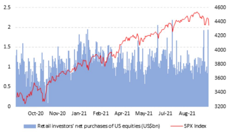 周三,根据Vanda Securities汇编的数据,散户在周二美股暴跌之际抢购了价值19亿美元的股票,这是自疫情开始以来最大的五个净买入日之一。数据显示,散户投资者涌向受到冲击最严重的科技股,如苹果及微软,同时逢高抛出了航空等经济重启受益行业的股票。