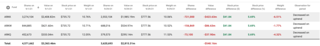 “木头姐”旗下三只ETF在周二美股大跌之际共抛售了特斯拉超过34万股,价值约2.7亿美元。9月以来,看涨特斯拉到3000美元的她,累计抛售特斯拉超过95万股。周二,有2.97亿美元资金从“木头姐”的ARKK中撤离,规模创下今年3月来最大。