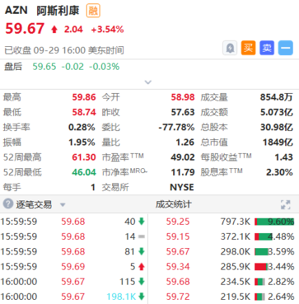阿斯利康昨日收涨超3.5%。