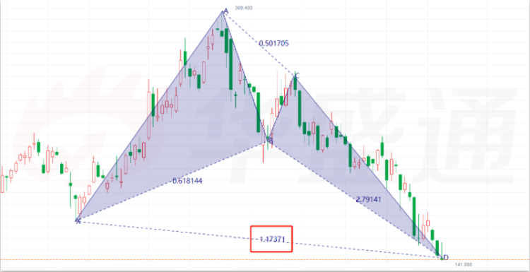 根据谐波技术交易理论,阿里巴巴目前走势正在构筑某种看涨螃蟹形态,但CD段跌势可能仍未完结。目前CD段约为XA段的1.174倍斐波那契扩展位,理论上这个数字为1.618倍则反转概率极大。若股价继续下行至理论上的斐波那契161.8%扩展位的话,届时阿里巴巴股价仅为81.5港元左右。