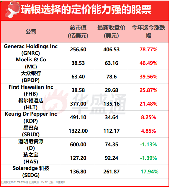 当通胀上升时,那些有充足定价权的公司能更从容应对,瑞银选择了一些能够在通胀中蓬勃发展的公司。
