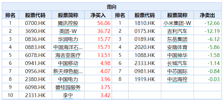 个股资金流向统计:南下资金持续加仓腾讯、美团;抛售小米集团、吉利汽车