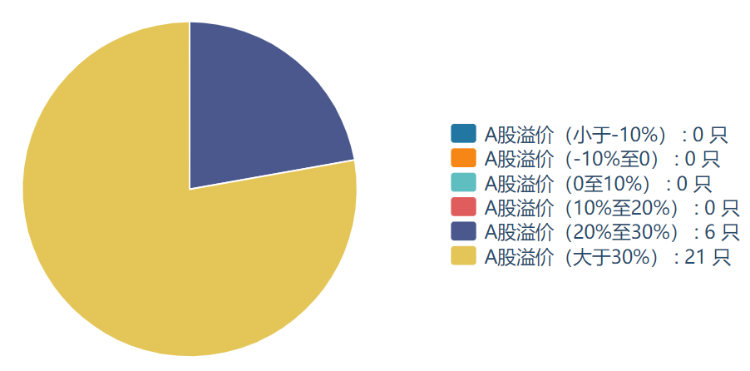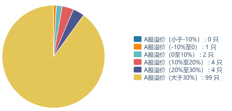 本周有120只A股溢价超过30%,10只溢价在20%至30%之间,4只在溢价10%至20%之间,2只溢价在0-10%之间,1只溢价在-10%至0之间。