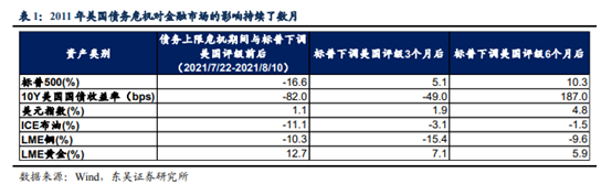 2011年债务危机期间,标普500指数跌幅近17%,10年期美债收益率下行82bps,避险情绪下黄金飙升近13%。大类资产中,债务危机对于美债影响的持续性尤为显著,持续了三个多月。
