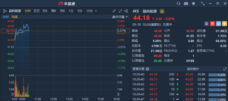 华盛资讯9月30日讯,美股盘中,热门中概股全线上扬,荔枝(LIZI)涨超12%,大全新能源(DQ)涨超6%,晶科能源(JKS)涨近6%,网易(NTES)、360数科(QFIN)涨超4%,贝壳(BEKE)涨超3%,达达集团(DADA)涨近3%,小鹏汽车(XPEV)涨超2%、唯品会(VIPS)、微博(WB)涨超2%。